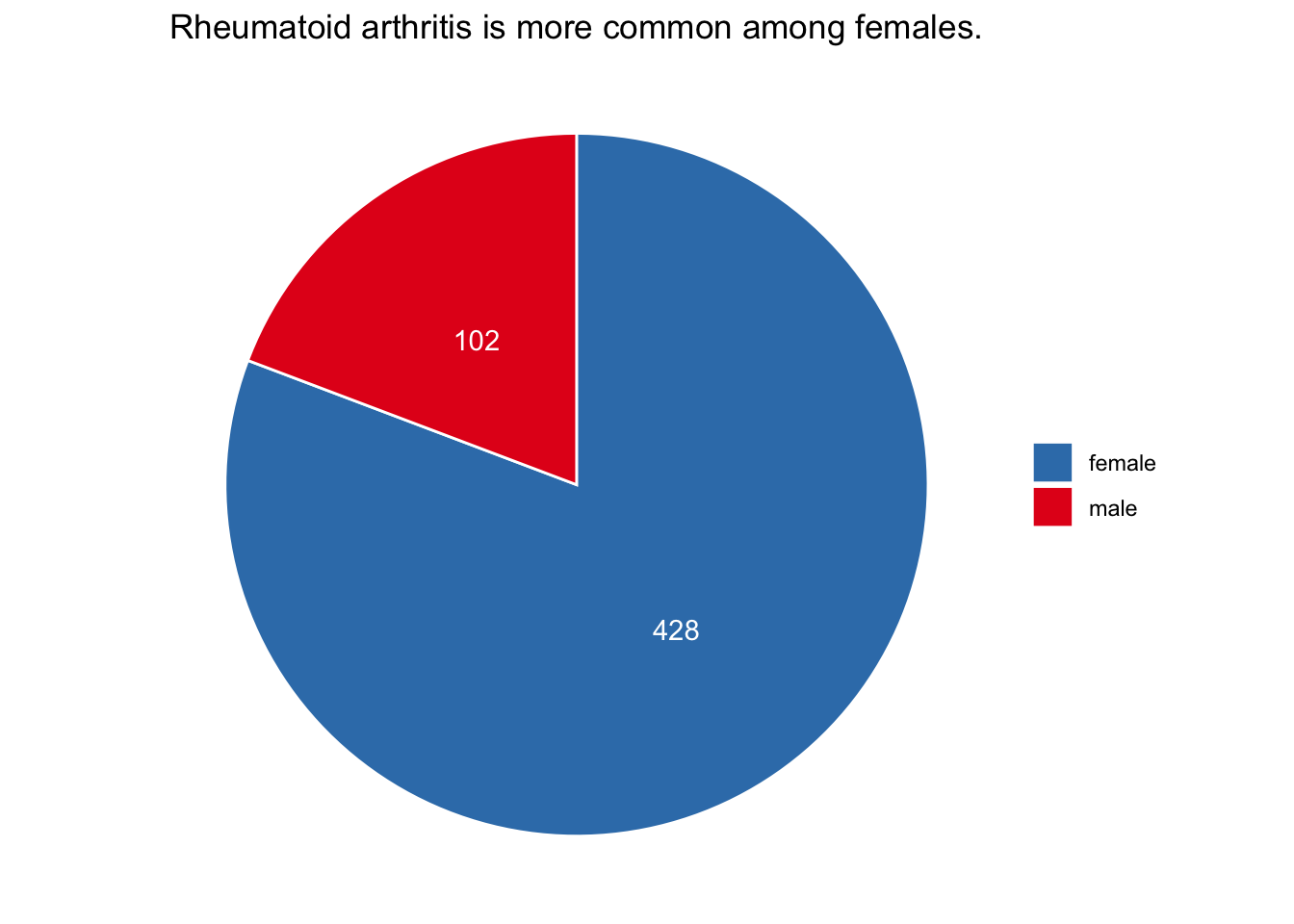 This chart starts shows the proportion of males and females with rheumatoid arthritis. In what ways is it a good visualization? In what ways is it lacking? (No need to answer these!)